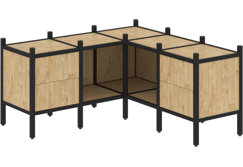 Стеллаж угловой внутренний вариант 36 Европа, цвет тиквуд светлый + черный