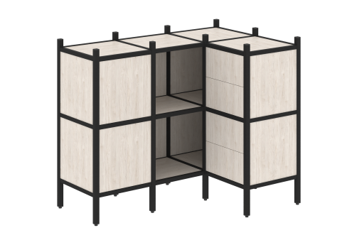 Стеллаж угловой внутренний вариант 36 Европа, цвет тиквуд светлый + черный