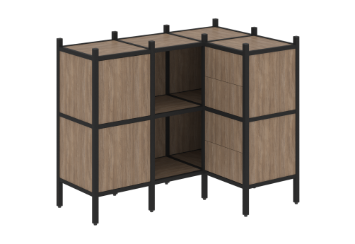 Стеллаж угловой внутренний вариант 36 Европа, цвет тиквуд светлый + черный