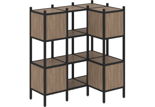 Стеллаж угловой внутренний вариант 37 Европа, цвет тиквуд светлый + черный