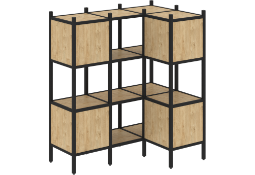 Стеллаж угловой внутренний вариант 37 Европа, цвет тиквуд светлый + черный