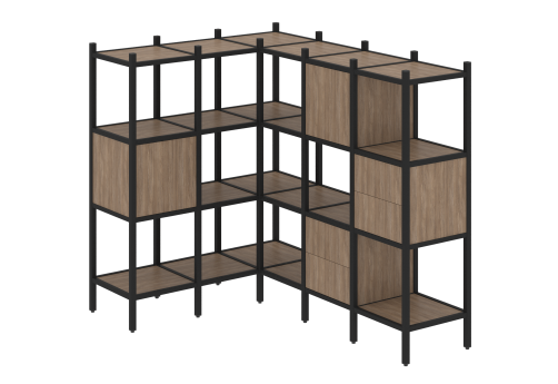 Стеллаж угловой внутренний вариант 37 Европа, цвет тиквуд светлый + черный
