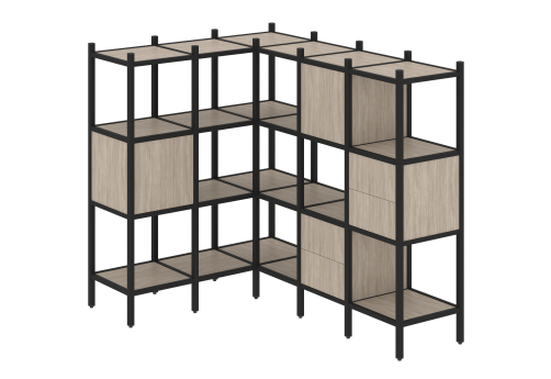 Стеллаж угловой внутренний вариант 36 Европа, цвет денвер светлый + черный