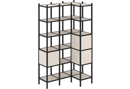 Стеллаж угловой внутренний вариант 37 Европа, цвет денвер светлый + черный