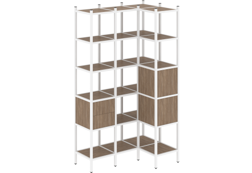 Стеллаж угловой внутренний вариант 37 Европа, цвет тиквуд светлый + белый