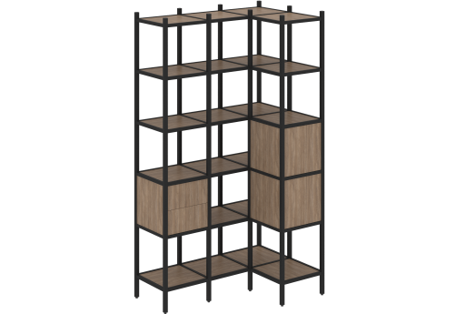 Стеллаж угловой внутренний вариант 37 Европа, цвет тиквуд светлый + черный