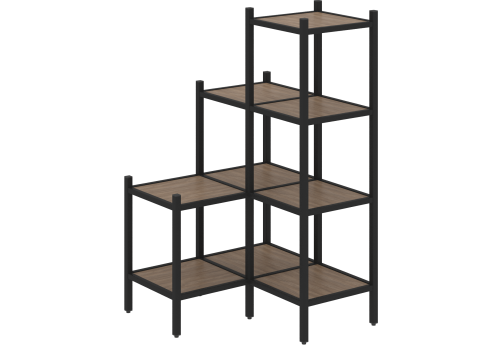 Стеллаж угловой внутренний вариант 37 Европа, цвет тиквуд светлый + черный