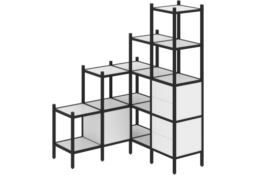 Стеллаж угловой внутренний вариант 37 Европа, цвет белый бриллиант + черный