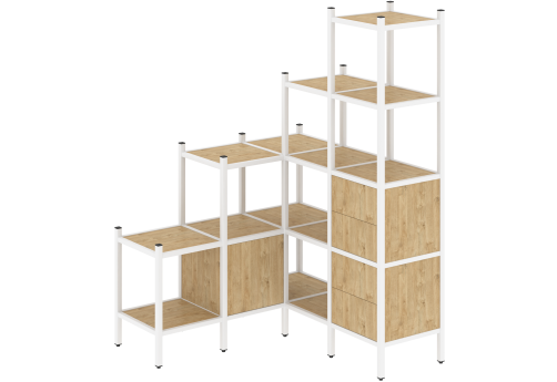 Стеллаж угловой внутренний вариант 37 Европа, цвет тиквуд светлый + белый