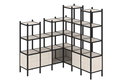 Стеллаж угловой внутренний вариант 41 Европа, цвет денвер светлый + черный