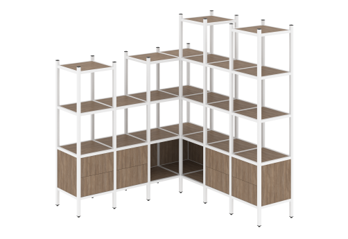 Стеллаж угловой внутренний вариант 37 Европа, цвет тиквуд светлый + белый