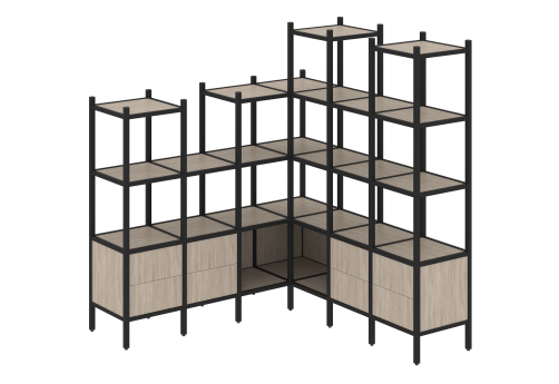 Стеллаж угловой внутренний вариант 36 Европа, цвет денвер светлый + черный