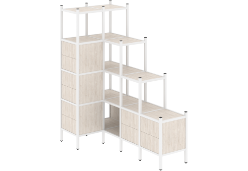 Стеллаж угловой внутренний вариант 37 Европа, цвет тиквуд светлый + белый