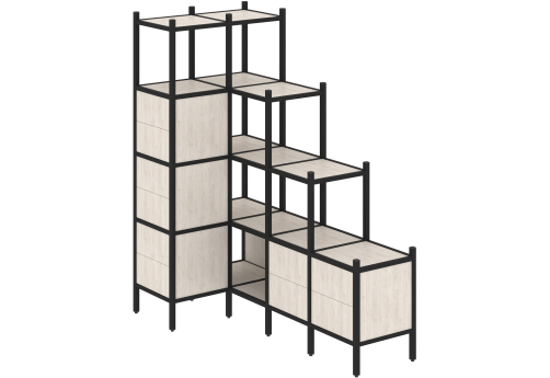 Стеллаж угловой внутренний вариант 37 Европа, цвет тиквуд светлый + черный