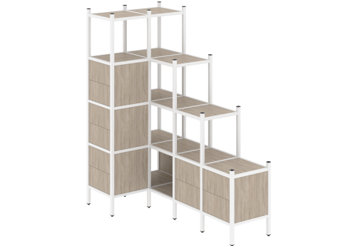 Стеллаж угловой внутренний вариант 37 Европа, цвет тиквуд светлый + белый