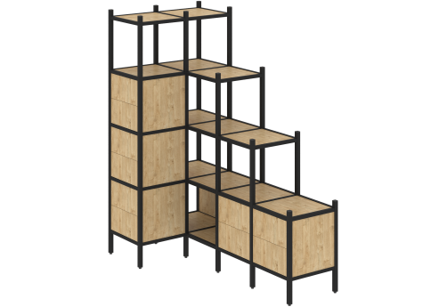 Стеллаж угловой внутренний вариант 37 Европа, цвет тиквуд светлый + черный