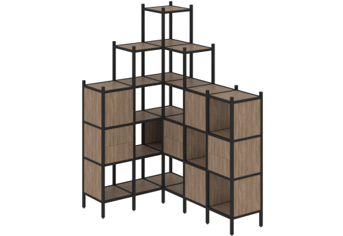 Стеллаж угловой внутренний вариант 37 Европа, цвет тиквуд светлый + черный