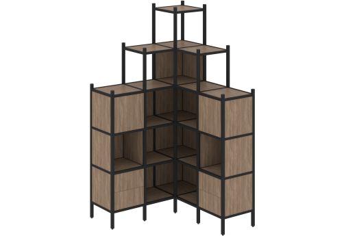 Стеллаж угловой внутренний вариант 37 Европа, цвет тиквуд светлый + черный