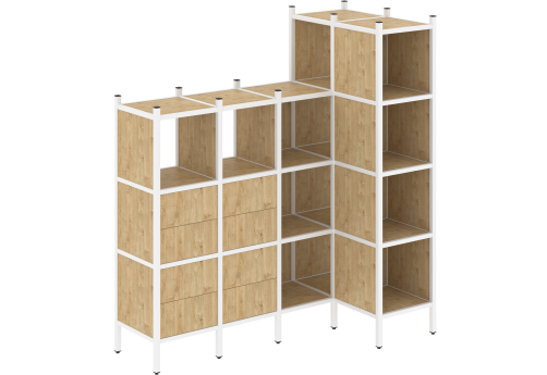 Стеллаж угловой внутренний вариант 37 Европа, цвет тиквуд светлый + белый