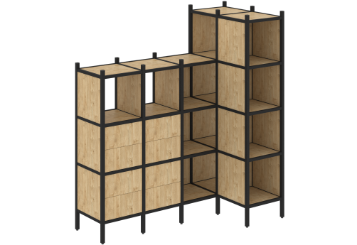 Стеллаж угловой внутренний вариант 37 Европа, цвет тиквуд светлый + черный