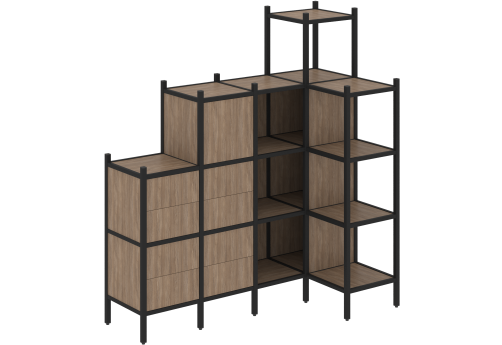 Стеллаж угловой внутренний вариант 37 Европа, цвет тиквуд светлый + черный