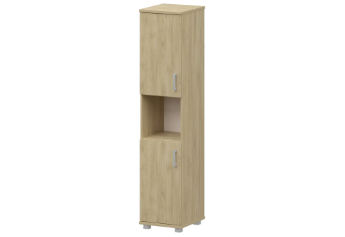 Стеллаж высокий узкий закрытый Сантана, цвет дуб сафари + серый