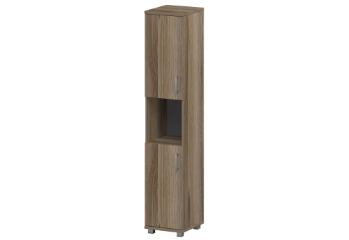 Стеллаж высокий узкий закрытый Сантана, цвет дуб сафари + серый