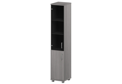 Стеллаж высокий узкий закрытый с стеклянным фасадом Сантана, цвет баттл + серый