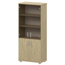 Стеллаж высокий узкий закрытый с стеклянным фасадом Сантана, цвет дуб сафари + серый