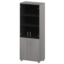 Стеллаж высокий закрытый со стеклянными фасадами Сантана, цвет лиственница + серый