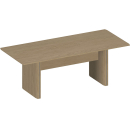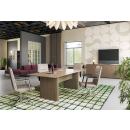 Кромка из шпона толщиной 2 и 0,8 мм с лакокрасочным покрытием, скругленная форма столешницы, использование технологии вакуумного мембранного прессования шпона для облицовки опор столов.