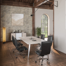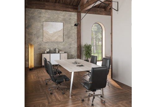 Элегантный премиальный дизайн отечественного кабинета Кронберг выполнен в современном стиле и подчеркивает высокое качество материалов. Металлические опоры сложной формы, эффект парящей столешницы, отсутствие лицевой фурнитуры - все это придает визуальную воздушность и легкость мебели для руководителя.
