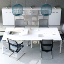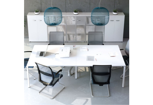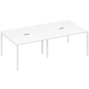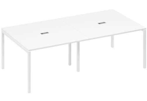 Современная стильная мебель отечественного производства на металлокаркасе с порошковым покрытием - П-образная опора с сечением 40х40х2 мм с траверсами. Столешница с проставками, с пластиковым кабель-каналом прямоугольной формы. Возможность установки настольных и подстольных экранов, а также применения системы кабель-менеджмента.