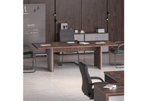 Современная качественная мебель для кабинета руководителя, выполненная из ЛДСП, МДФ с покрытием ламинатом и эмалью. Модельный ряд позволяет полностью укомплектовать рабочее место руководителю, а также переговорную комнату.