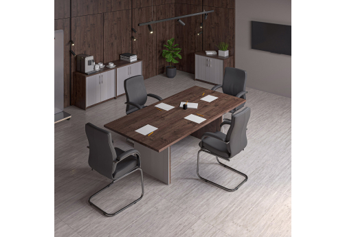 Современная качественная мебель для кабинета руководителя, выполненная из ЛДСП, МДФ с покрытием ламинатом и эмалью. Модельный ряд позволяет полностью укомплектовать рабочее место руководителю, а также переговорную комнату.