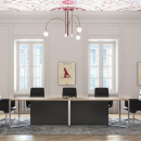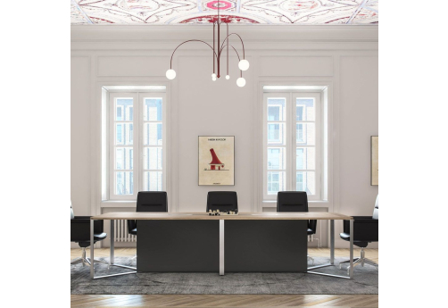 Коллекция мебели Эллиот – это столы для переговоров и столы-президиумы на металлических опорах цвета «металлик» с защитным лаковым покрытием. Модульная конструкция позволит создать столы необходимого размера и формы на разное количество посадочных мест. Есть возможность комплектации системой кабель-менеджмента со съемной панелью и монтажа блоков с розетками.