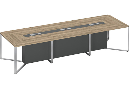 Стол для переговоров составной 3-секционный Эллиот Конференц, цвет дуб гладстоун темный + антрацит премиум