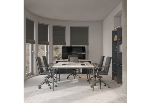 Мебель в кабинет руководителя, выполненная в современном дизайне. Большая линейка рабочих столов: на опорных тумбах, креденциях, столы для переговоров на металлокаркасе. Практичные места для хранения.