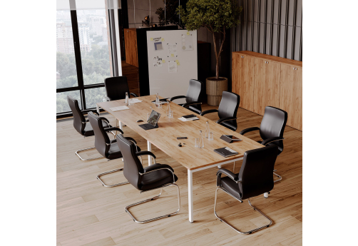 Стол для переговоров составной Стинг, цвет дуб крафт + белый