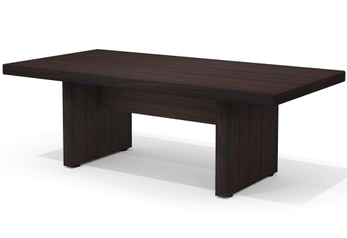 Стол руководителя с кожаным бюваром, подвесной тумбой и брифинг-приставкой правый, цвет вишня