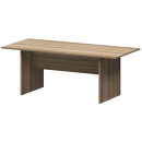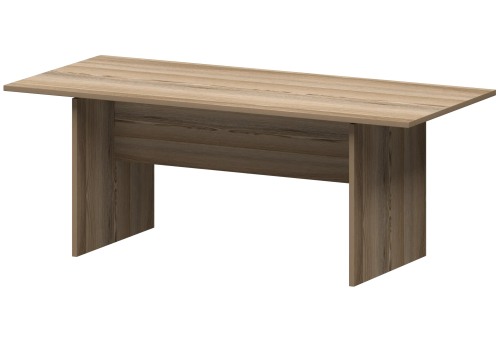 Классический дизайн, столы с «парящей» столешницей, с алюминиевыми проставками. Фурнитура - матовые ручки и квадратные опоры на тумбах и шкафах. Фактура ЛДСП сделана по технологии тиснения «шпон».