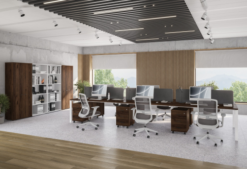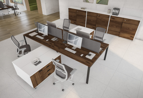 Серия офисной мебели для персонала в актуальных цветах, со столами на металлических опорах, которая отлично впишется в офисы в стиле лофт. Большая линейка систем хранения: локеры, шкафы, тумбы, тумбы-органайзеры, шкафы-купе, а также надстройки и настольные экраны помогут обустроить по настоящему удобное комфортное рабочее место каждому сотруднику.