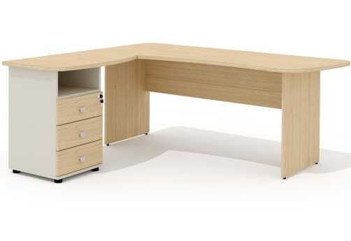 Стол эргономичный с тумбой левый Джерси, цвет дуб