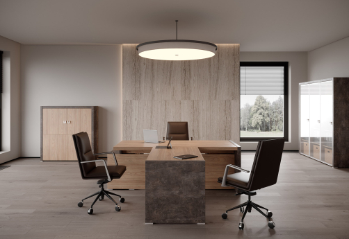 Челси – современный кабинет для руководителя. Качественная мебель, которая поможет обустроить офис любой площади. В линейке: столы, в том числе ассиметричные, на опорных тумбах, переговорные, а также системы хранения, шкафы с подсветкой, тумбы. Актуальные теплые древесные оттенки с цветами-компаньонами.