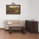 Кабинет Ровер для любителей старой доброй классики. Столы с накладными бюварами (на выбор черного, зеленого или серого цвета). Тумбы, шкафы, греденции с элементами из профиля МДФ. Фурнитура под состаренное серебро. И, конечно, высокое качество исполнения мебели.