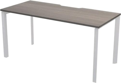 Прямые и эргономичные рабочие столы, бенчи на металлокаркасе П-образной формы. Фурнитура - матовые ручки и квадратные опоры на тумбах и шкафах. Фактура ЛДСП сделана по технологии тиснения «шпон».