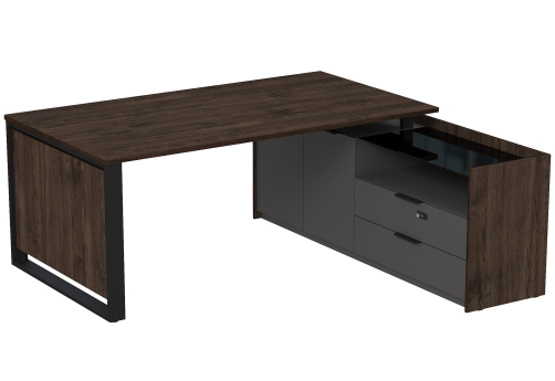 Стол на опорной угловой тумбе с ящиками (метабокс) и замком Венди, цвет брауни + графит