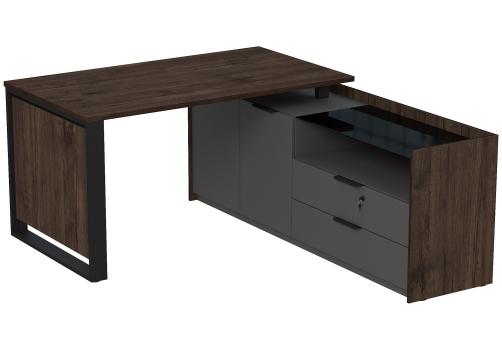 Стол на опорной угловой тумбе с ящиками (метабокс) и замком Венди, цвет брауни + графит