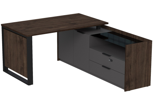 Стол на опорной угловой тумбе с ящиками (метабокс) и замком Венди, цвет брауни + графит