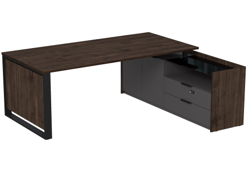 Стол на опорной угловой тумбе с ящиками (метабокс) и замком Венди, цвет брауни + графит